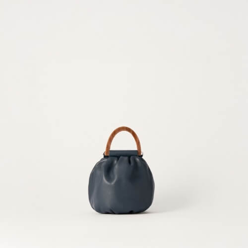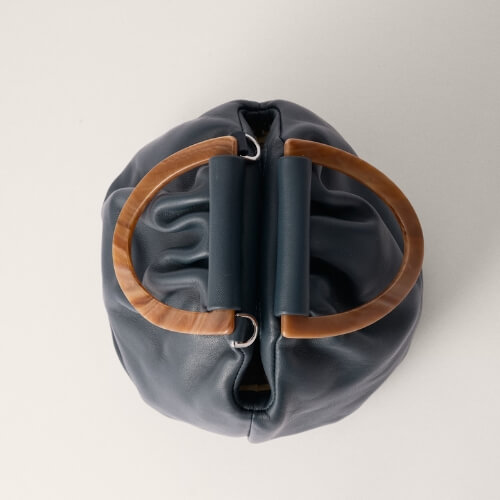 Bolso pequeño de notas vintage de estructura fruncida, realizada en napa de cordero extremadamente suave y agradable. Con asa de mano de metacrilato, asa bandolera y cierre de imán oculto. Diseñado y fabricado íntegramente en España de forma sostenible.