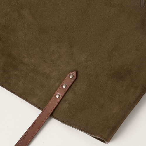 Bolso shopper grande, realizado en 2 modelos de piel distintos para elegir, un serraje de vacuno tratado desde el origen para repeler el agua y un cuero nobuck, con un efecto despeluchado.