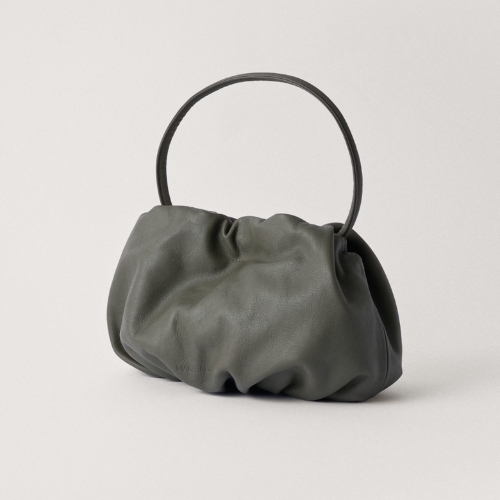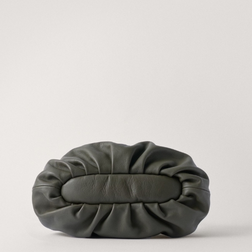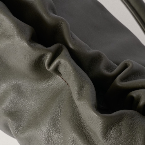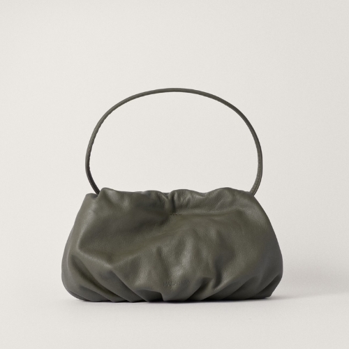 Bolso de hombro mediano realizado en piel de vacuno fruncido y con forro interior de algodón. Diseñado y fabricado íntegramente en España mediante procesos sostenibles.