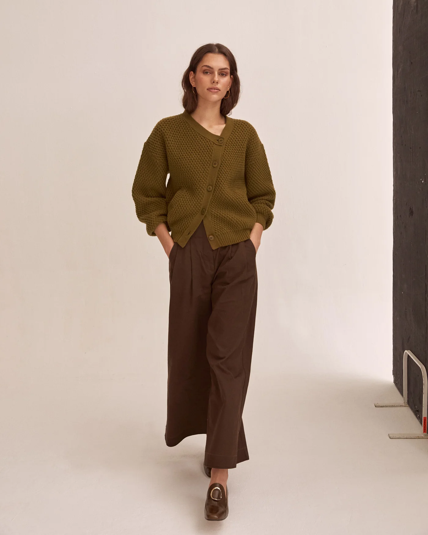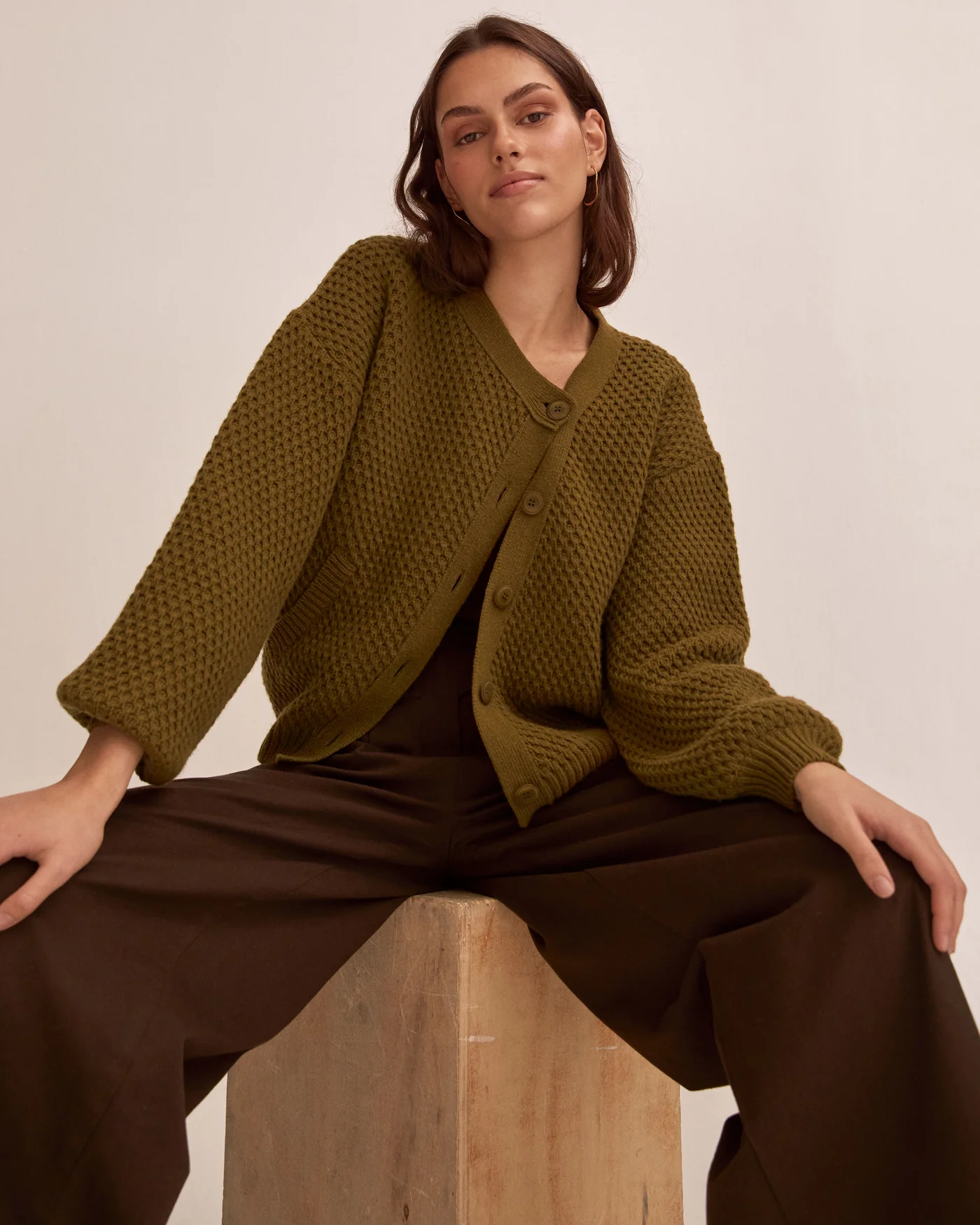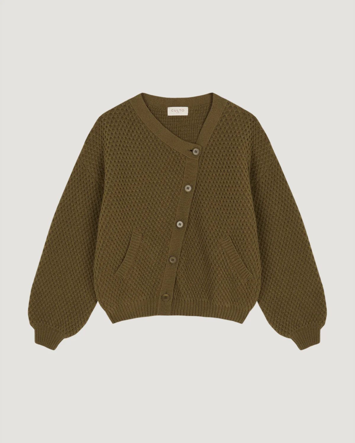 En 1960, la actriz Eleonora Rossi ganó el premio a la mejor actriz del Festival Internacional de Cine de Mar del Plata y el premio de la Academia italiana. Destacó por su interpretación de personajes sutiles y elegantes. Chaqueta tipo bomber de escote asimétrico, con botonadura delantera y bolsillos vistos. Está confeccionada en una hilatura 100% de lana merino, con detalle de dibujo gofrado que le aporta un aire moderno y sofisticado. Hecha a mano en España.