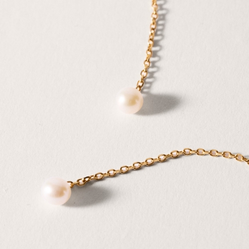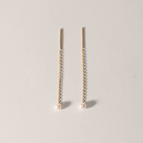 Pendiente colgante de cadena en plata de ley 925 chapada en 2 micras de oro 24kt. Perla pequeña.