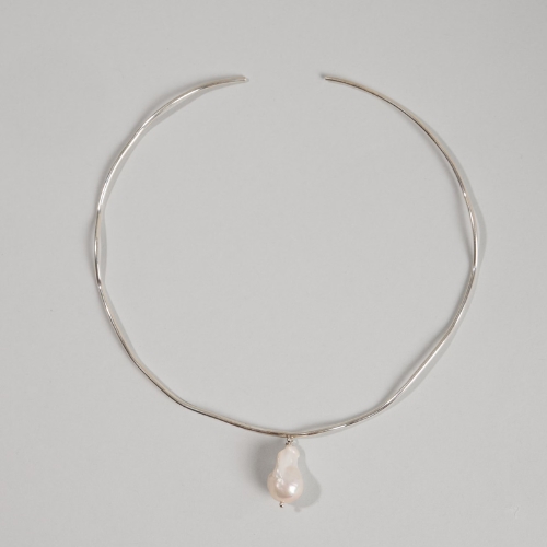 Gargantilla rígida hecha en plata de ley 925 con detalle de una perla barroca grande colgante. El diseño está inspirado en los paisajes paradisiacos de Tahití, una de las perlas del pacífico. Medidas de la circunferencia de la gargantilla: 12 cm x 12 cm con apertura regulable. Este producto tiene una garantía de 1 año en el baño. La forma de la perla, debido a que son perlas de río naturales, puede variar ligeramente. Nuestras líneas de joyería se realizan con metales nobles obtenidos a partir de piezas recicladas, de esta forma evitamos la explotación de metales preciosos directamente de las minas, y promovemos el reciclaje de estas piezas para darles una segunda vida. Diseñado y fabricado íntegramente en España mediante procedimientos y pequeñas producciones sostenibles.