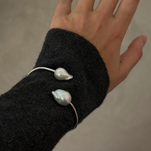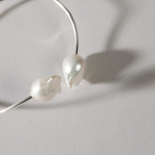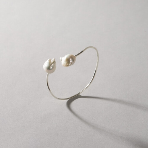 Brazalete abierto fabricado en plata de ley 925 y chapada en 2 micras de oro de 24k, con dos detalles de perlas barrocas en los extremos. Talla única ajustable. El concepto de esta línea de joyería tiene como inspiración los paisajes paradisíacos de Tahití, una de las perlas del pacífico. Este producto tiene una garantía de 1 año en el baño. Nuestras líneas de joyería se realizan con metales obtenidos a partir de piezas recicladas, de esta forma evitamos la explotación de metales preciosos directamente de las minas, y promovemos el reciclaje de estas piezas para darles una segunda vida. Diseñado y fabricado íntegramente en España mediante procedimientos y pequeñas producciones sostenibles.