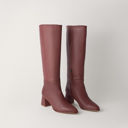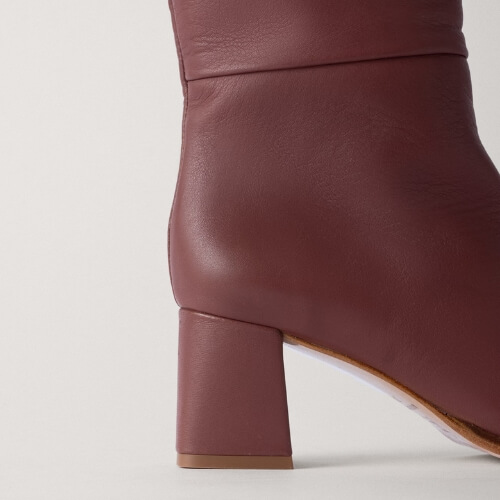 Bota de caña alta de tacón de estilo urbano y elegante, hecha en piel de vacuno de mano amable y suave tacto. Con cierre de cremallera para que sea más cómoda de poner y quitar. Con un tacón ancho de altura media súper cómodo. Altura de tacón 5,5 cm. Diseñado y fabricado íntegramente en España de forma sostenible.
